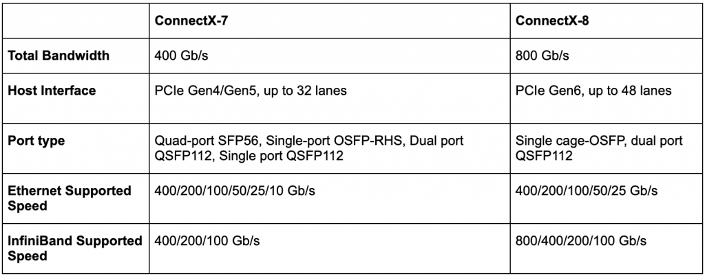- Key upgrades in ConnectX-8 vs. ConnectX-7